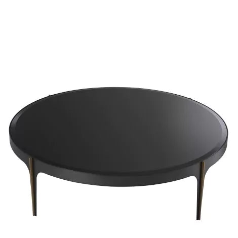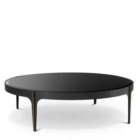 Mit einem modernen Mid-Century-Design und schicker Ausstrahlung setzt der große Couchtisch Artemisa mit einem eleganten Metallrahmen in gebürstetem Messing-Finish ein Statement. Die inneren Rundungen des Rahmens werden durch schlanke Bronzestäbe an den Beinen und eine runde Tischplatte aus abgeschrägtem Spiegelglas akzentuiert, wodurch die Geräumigkeit innerhalb der soliden Materialien, die dieses Stück formen, in den Mittelpunkt gerückt wird. Kombinieren Sie ihn mit dem kleinen Couchtisch Artemisa für einen ausgewogenen Look.