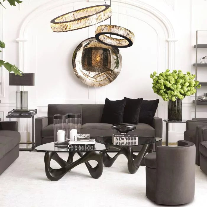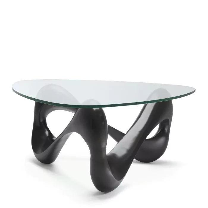 Der Couchtisch Aventura ist ein wahres Kunstwerk! Er besteht aus einem einteiligen, gewellten Sockel aus Bronze und einer dreieckigen Glasplatte mit abgerundeten Ecken. Erwärmen Sie das Ambiente, indem Sie diesen beeindruckenden Tisch auf einem prächtigen Teppich platzieren