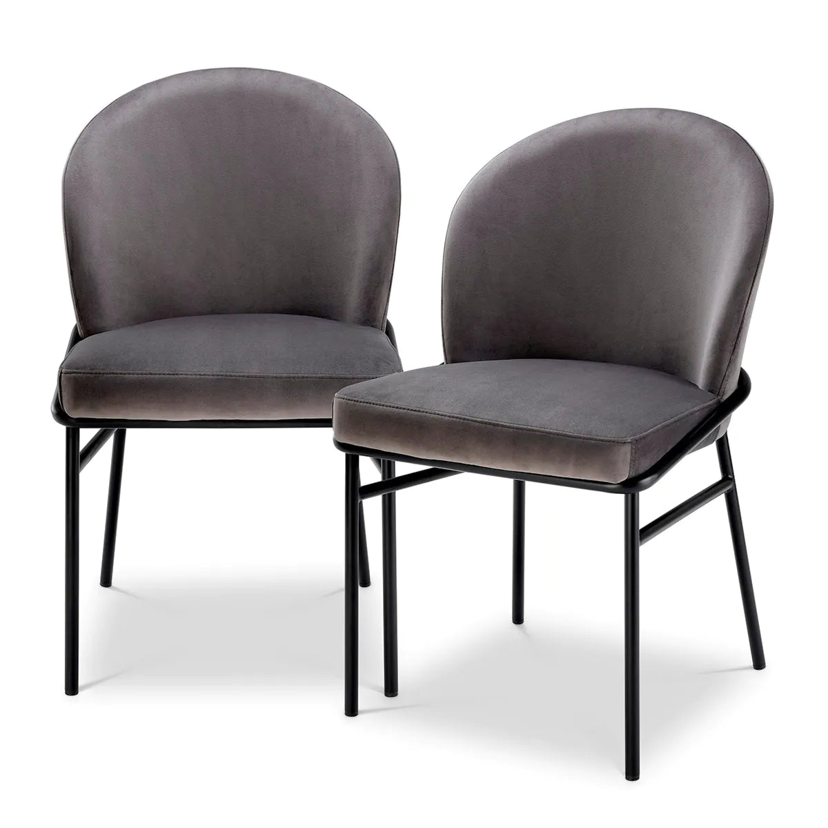 Wenn Sie ein Anhänger des Retro-Styles sind, sind die Esszimmerstühle Willis genau das richtige für Sie! Das sind die perfekten Esszimmerstühle: zurückhaltend, elegant und sehr bequem. Außerdem passen sie zu jedem Einrichtungsstil, ob klassisch oder zeitgenössisch. Diese Esszimmerstühle haben einen schwarzen Stahlrahmen mit einem Sitz und einer Rückenlehne aus grauem Savona-Samtpolster und werden in einem 2er-Set geliefert.