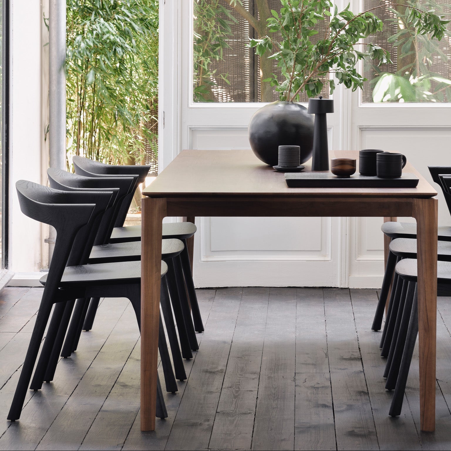 Der Bok Tisch von Ethnicraft, entworfen von Alain van Havre, vereint kunstvolles Design und zeitgemäße Handwerkskunst in einer anmutigen Form. Die geschwungenen Formen erinnern an Ziegenhörner und verleihen dem Esstisch aus massiver Eiche eine skulpturale Eleganz. Ein zeitloses und langlebiges Möbelstück für jeden Raum.