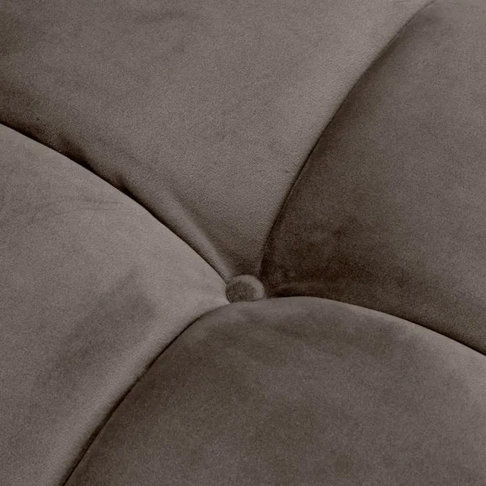 Produktinformation: Die Rückenlehne ist t-förmig und bildet eine Einheit mit den Armlehnen. Dieser elegante, moderne Sessel ist mit einer getufteten Polsterung aus weichem Savona-Samt in Greige und vier quadratischen Kissen ausgestattet. Schwarz lackierte Beine verleihen dem luxuriösen Look zusätzlichen Glamour.