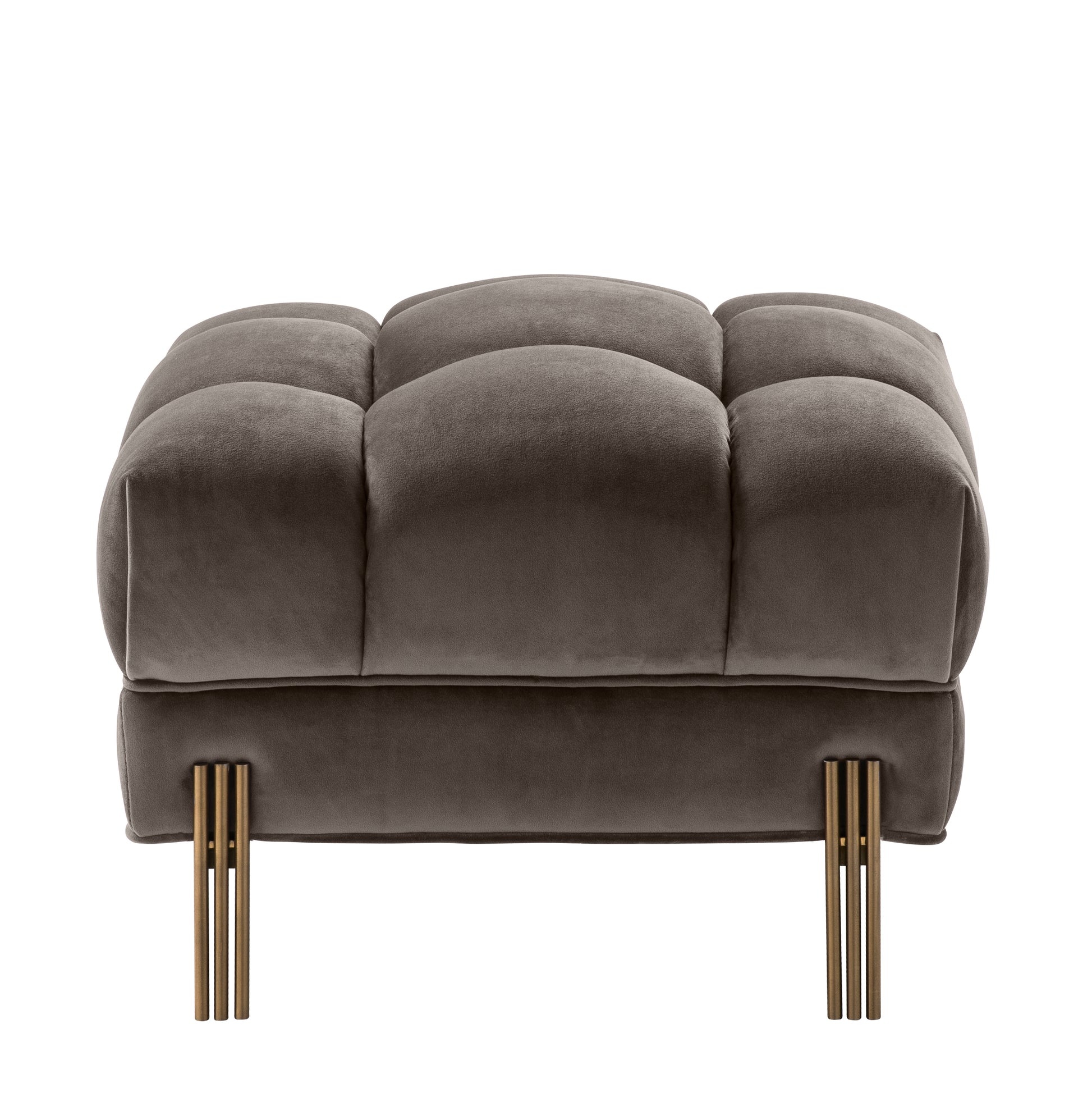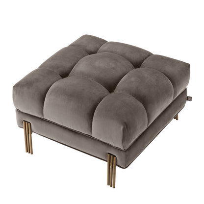 Der prächtige Sienna Hocker verbindet Komfort mit High-Style. Diese elegante moderne Ottomane wird in einem getufteten Polster aus weichem Savona-Grau-Samt geliefert. Goldfarbene Beine verleihen seinem luxuriösen Look zusätzlichen Glamour.